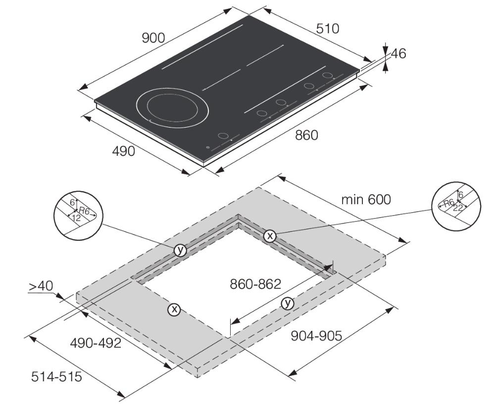 • Обработка края: Прямой край для установки вровень со столешницей.